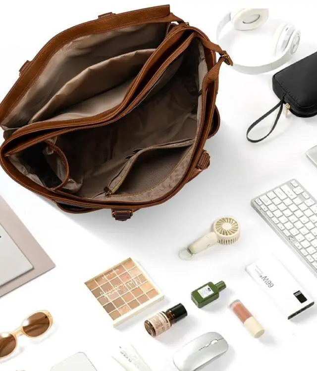 This organized work tote bag ensures your day flows seamlessly, keeping you effortlessly in control from morning coffee to evening unwind. ^^ A Bag That Fits Your Whole World, Beautifully From your laptop and iPad to your favorite Stanley tumbler and A4 folders, this large capacity teacher tote bag is your trusted daily companion. Its not just a bag; its a mobile command center for your ambitious life, gracefully carrying all you need for work, class, or a spontaneous adventure. ^^ Timeless Texture, Unwavering Style Crafted from vintage-inspired pebbled PU leather, this structured tote bag holds its shape through every journey.