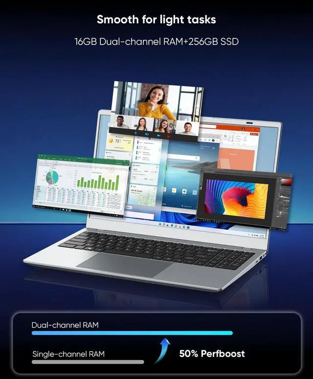 RAM/256GB SSD: Smooth Multitasking & Sufficient Storage ] Featuring 16GB RAM and 256GB SSD, this laptop meets daily usage needs well. The 16GB RAM supports running multiple common applications at the same timelike editing documents while opening several browser tabs or having a video callwithout obvious lag. The 256GB SSD enables fast boot-ups and quick app launches, and provides enough storage space for daily files such as office documents, photos and frequently used software, suitable for daily work and casual use. ^^ [ 15.6"