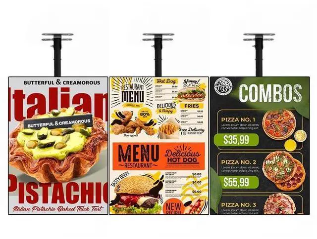 Supports 24/7 continuous loop playback and image rotation for flexible information delivery. ^^ Robust CompatibilityThe built-in Android-based digital menu boards for restaurants ensures seamless connectivity with diverse devices while maintaining stable signal transmission. With 2K HD display support, every frame remains crystal clear and lossless. ^^ Ultra-Portable & Smart ManagementThe digital signage display supports HDMI plug-and-play functionality without requiring drivers. It comes pre-installed with the Google Play Store, enabling immediate operation upon startup. The complimentary
