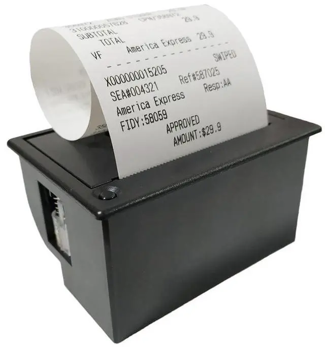 One roll Thermal paper! The printer uses very common 2.25" wide thermal paper, available in any office or stationery supply store. Our thermal printer works well with a 12V3A power supply. Since the printer is mainly embedded in the device, it is equipped with a 3PIN power terminal cable. If an external power supply is required, You also need a 12V DC regulated power supply and a 2.1MM jack terminal block adapter for easier connection to the power adapter. We really like this printer because its easy to make Bold, underline, inverted text, variable line spacing, left/center/right justification, barcodes with adjustable height, and even custom QR code.