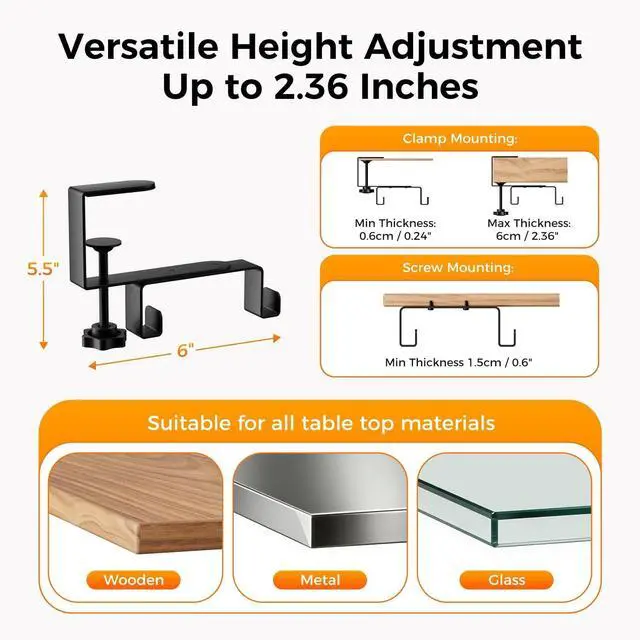 Dual-Installation Methods: Perfect for All Desk Types We understand that every desk is different, which is why this under desk organizer supports two hassle-free