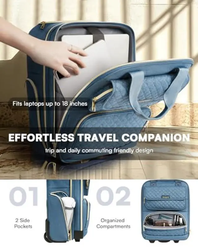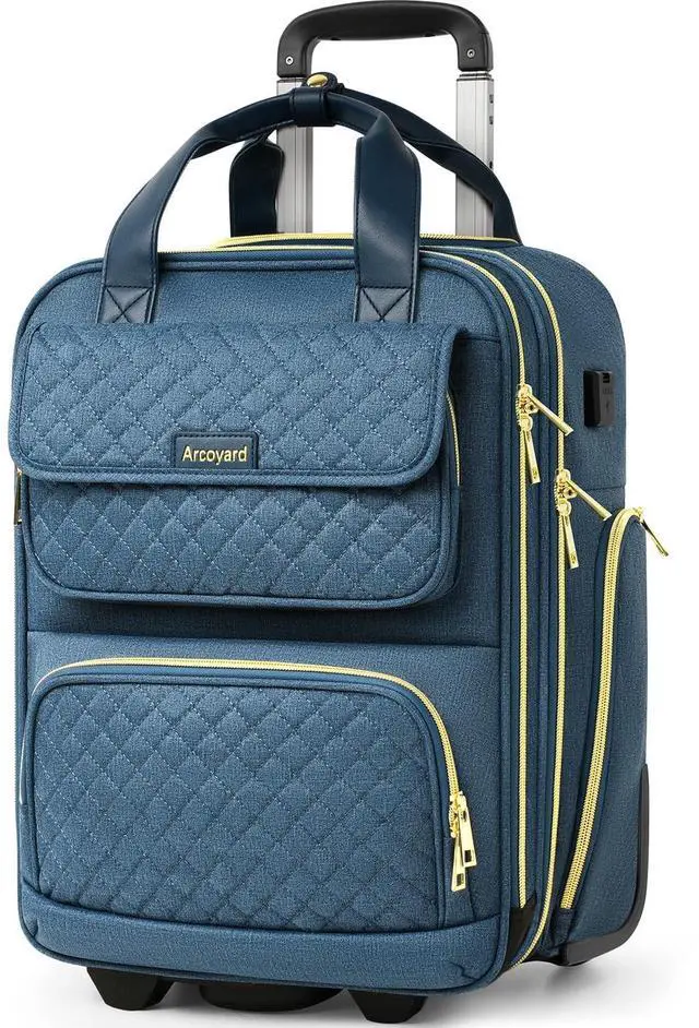 Arcoyard Underseat Carry On Luggage with Wheels, Airline Approved Personal Item Bag, 16-Inch Multi-functional Rolling Laptop Bag, Lightweight Overnight Suitcase for Women, Bussiness, Travel, Blue