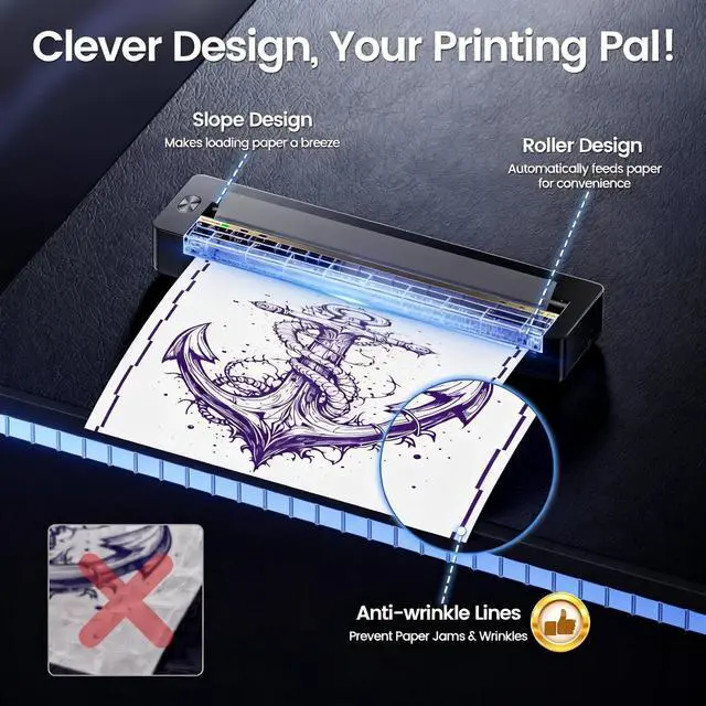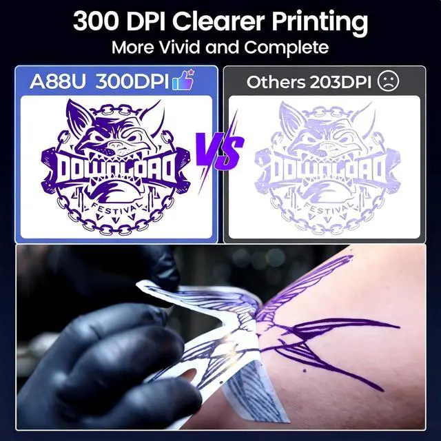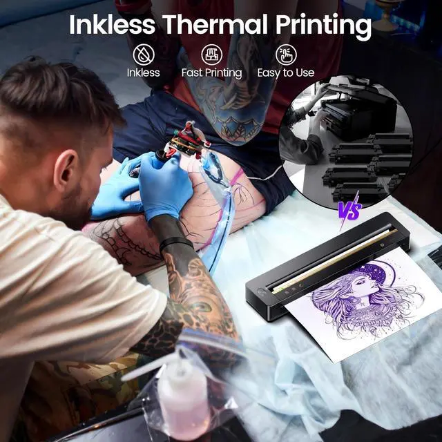 The TATTMUSE 2025 New Launch Tattoo Stencil Printer is a revolutionary thermal tattoo printer designed for tattoo beginners and artists alike. This mini tattoo stencil printer features an ultra-compact design, making it smaller than most A4 printers and as light as a bottle of water. It is battery-powered and wireless, ensuring portability and convenience. Compatible with phones, tablets, and PCs, this impresora para tatuajes offers seamless connectivity via Bluetooth and USB Type-C, supporting Android, iOS, Windows 7+, and macOS 10+. Equipped with a high-definition 300dpi print head, this tattoo thermal printer delivers precise and clear prints, even for intricate designs with thin lines and complex patterns.