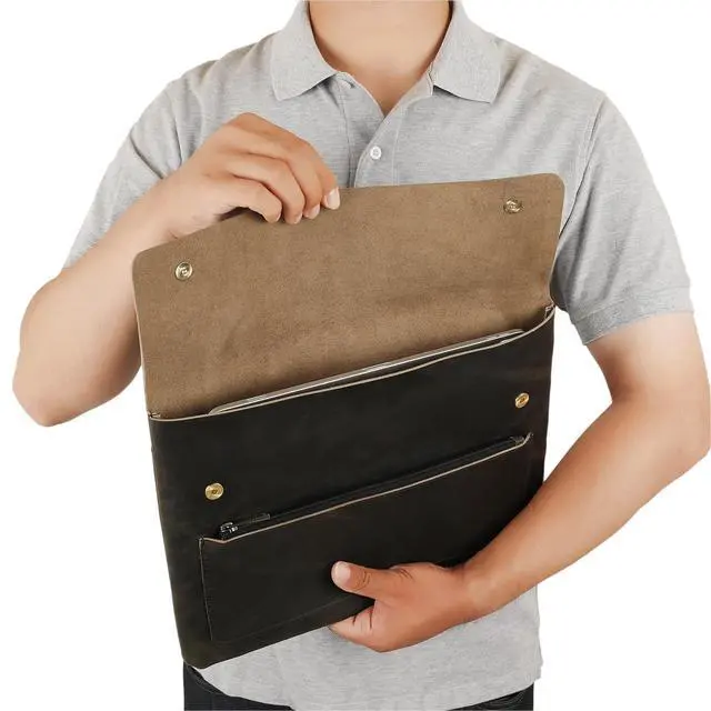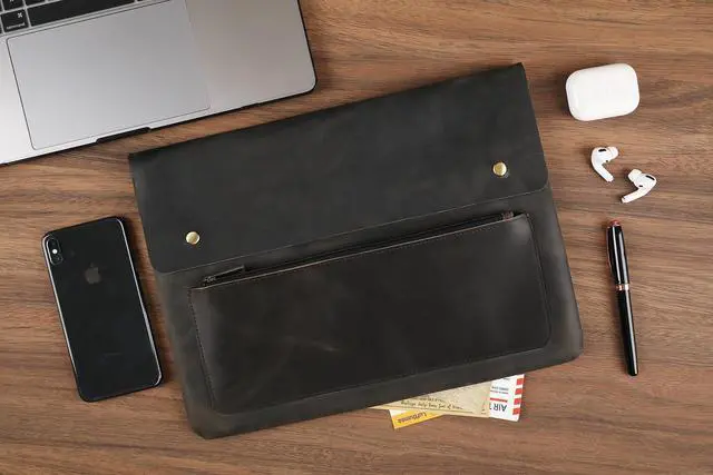 Also compatible with most tablets and e-readers. Additionally, the MacBook Pro sleeve can double as a mouse pad, providing functionality beyond just storage. ^^ Smart Organization - Features a spacious main compartment plus a zippered pocket for accessories. This leather folder allows for easy organization of your accessories. Whether you need to store your documents, pen, or other essentials, the MacBook sleeve up to15-inch has got you covered. ^^ Professional Elegance Meets Portability - Carry your laptop in style with the leather folio sleeve. Slim envelope-style design combines business sophistication with everyday practicality - equally at home in the office, classroom, or coffee shop.
