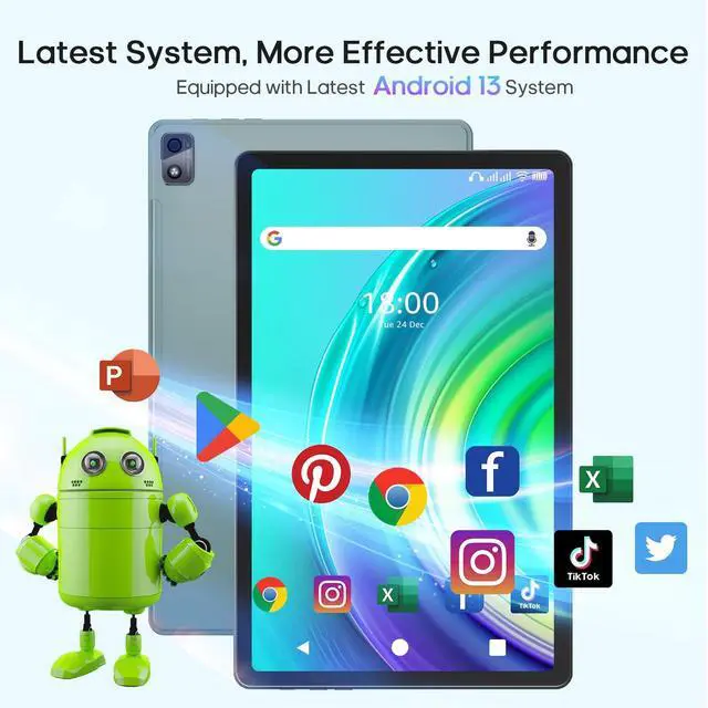 11 inch Android 13 TabletThis smart android tablet based on the latest Android 13 system, and supports horizontal screen view, multi window operation, humanized reading mode, eye protection mode, dark color mode and other detailed functions to make the tablet experience better. With Bluetooth 5.0 and 2.4/5GHz WiFi support, you'll enjoy seamless high-speed wireless connectivity for calls, browsing, and streaming. Perfect for work and communication.(Tabllet Case ASIN:B0DSFS12Q7)
