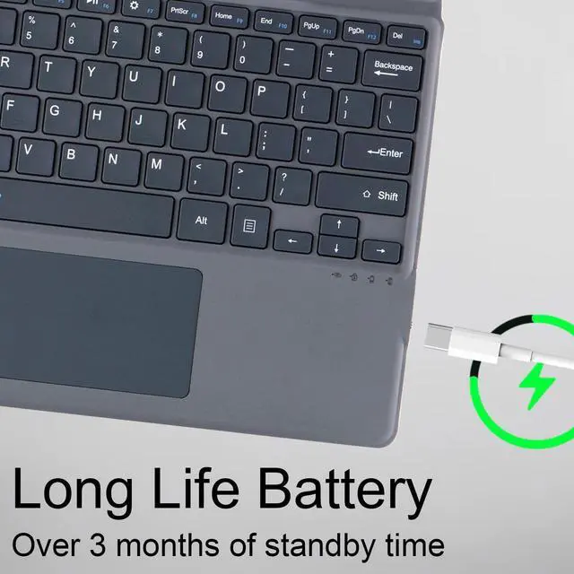 ^^ Type-C charging port: Charge keyboard externally with USB cable included. (NOT charged via magnetic attach). Equipped with 7-color LED backlight and 3 adjustable brightness options. Ultra thin and lightweight, easy to carry.