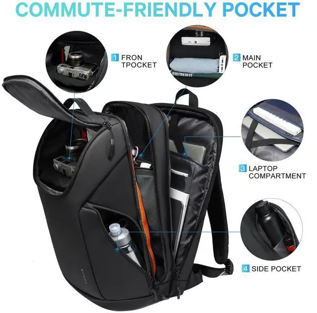 Multiple Compartments: The backpack features five pockets. The front pocket holds sneakers, headphones, cameras, and other items. The main compartment holds up to 4-5 garments and includes a separate wet-dry pouch. The dedicated laptop compartment features a 180 opening to fit a 15.6 -inch laptop and an iPad. Additionally, it includes two side pockets and a hidden anti-theft pocket to meet your daily needs. You can store anything you require, such as a water bottle, umbrella, and wallet, etc