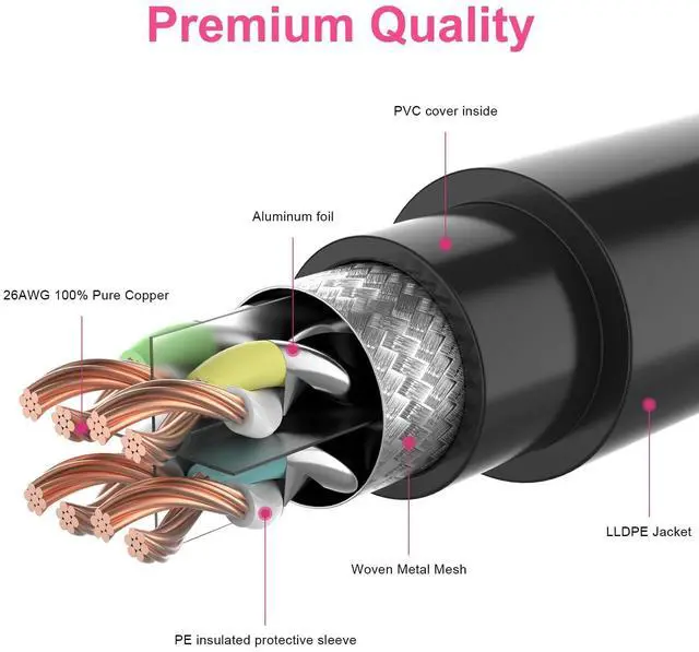 Durable: Our cat 8 outdoor cable is 26AWG with 4 pairs conductors and RJ45. 100% Pure copper. It uses 2000Mhz to transfer data up to 40Gbps, to provide you with the most stable signal and lower delay. Of course it works perfectly indoors ^^ Uv