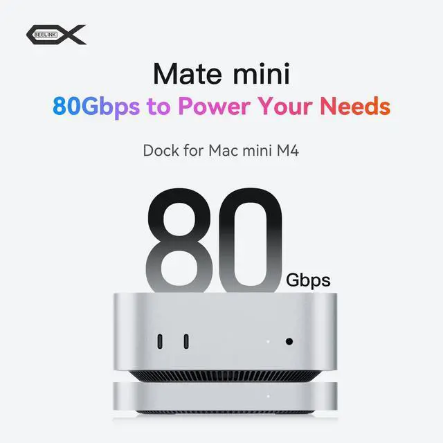 Expandable Storage: BEELINK EX Mate Mini features a single M. 2 2280 PCIe slot, supporting SSDs up to 8TB. Compatible with PCIe 3.0 / 4.0 / 5.0 NVMe SSDs, and capable of up to 80Gbps transfer speeds (SSD not included). Ideal for storing large files, video editing, and backups while keeping your desk organized. ^^ Superspeed Data Transfer Up to 80Gbps Our Mac mini M4 dock supports new technology with up to 80Gbps bandwidth for ultra-fast data transfer ideal for high-performance drives and HDDs.