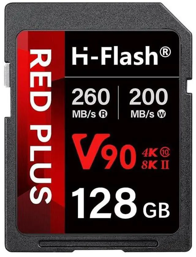Professional V90 SD Card: Achieve unparalleled performance with the H-Flash V90 SD card 128GB, boasting a remarkable read speed of 260 MB/s and write speed of 200 MB/s, perfect for shooting 4K/8K ultra-high clarity videos and capturing high-quality RAW photos. ^^ 2.