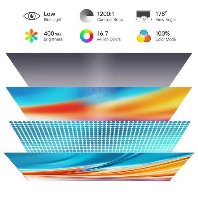 4K 100% Adobe RGB Screen: VILVA features 4K IPS panel technology, which allows for wider view angles and better color accuracy compared to other LCD panel types. With a resolution of 3840x2160 pixels, which is 4x more resolution than FHD monitor, resulting in incredibly sharp and detailed images. And provide smoother, and superior performance in gaming/multimedia. It can effectively reduce damage caused by blue light radiation without flickering, making it easier to watch for a long time!