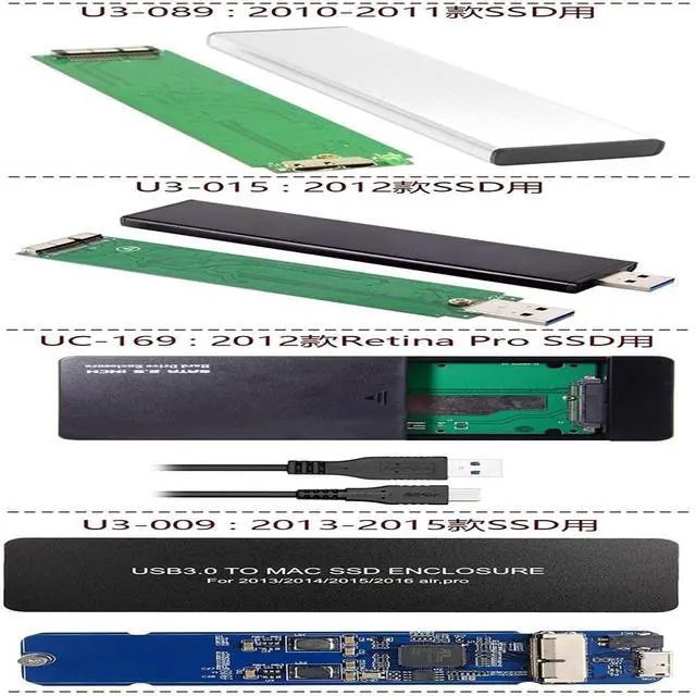 Mac Air Pro 2013 2014 2015 2016 SSD Portable Case USB 3.0 to 16+12 Pin Mobile Box HDD EnclosurePlease check the current of your SSD, it will don't work if it uptp 3.1A or later. The SSD must be 16+12pin contact. Support Mac Air Pro Retina 2013/2014/2015/2016 air, pro.
