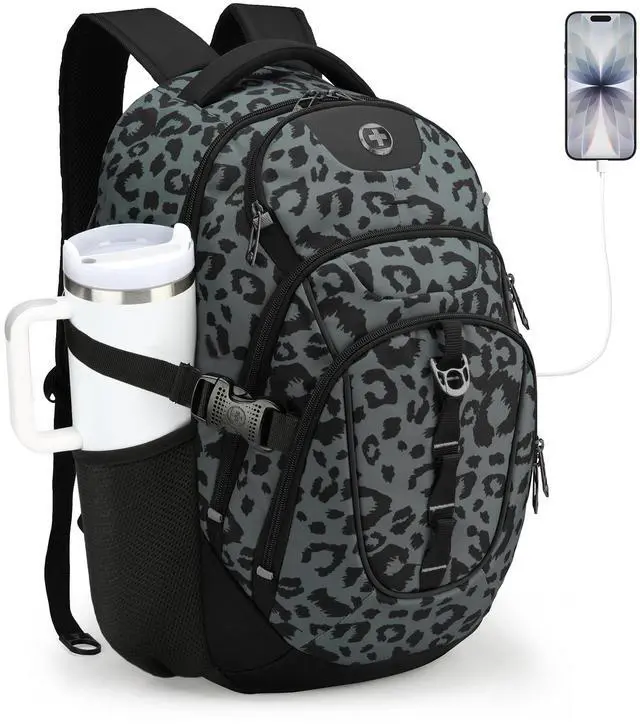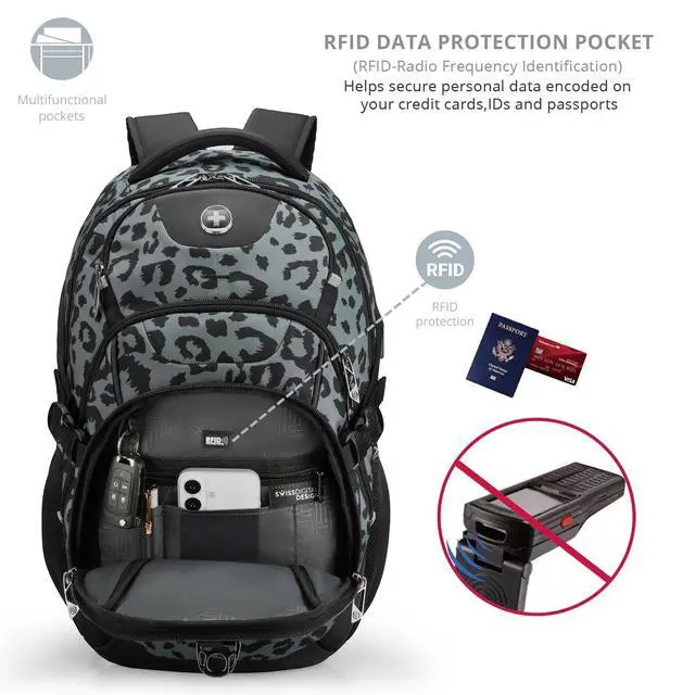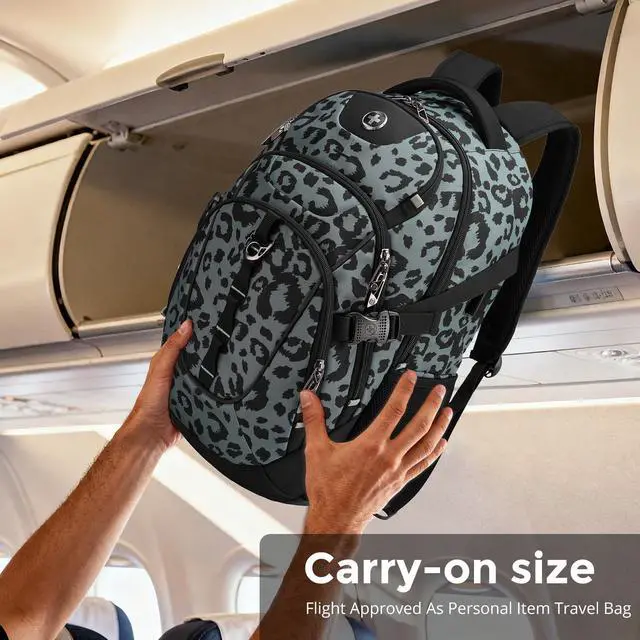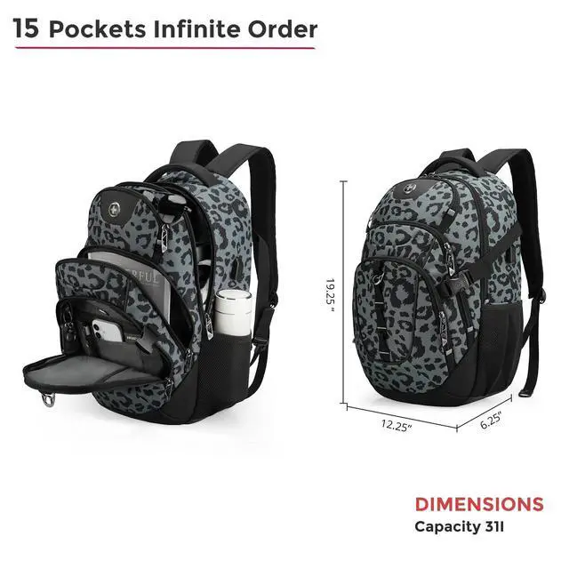 Swissdigital Laptop Backpack with USB Charging Port, Travel Backpack Fits 15.6 inches Computer, 31L Backpack for Men, Gray Leopard ^^ SD803-101