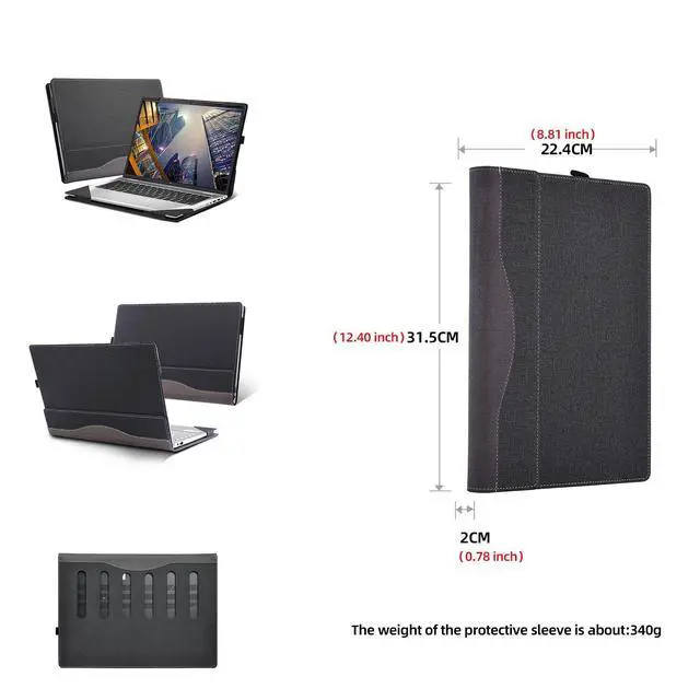 ^^ Design: Detachable design, (without pen) The notebook cover is a detachable two-piece, weighing about 340g ^^ There are 3 colors to choose from, there is always one you like. If you are sure it will work, use a ruler to measure the length, width and thickness of the machine. 315X224X20mm / 12.40X 8.81X 0.78 inches. inches for reference. Or contact us to check the size, thank you.