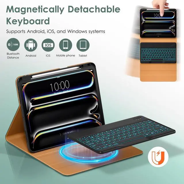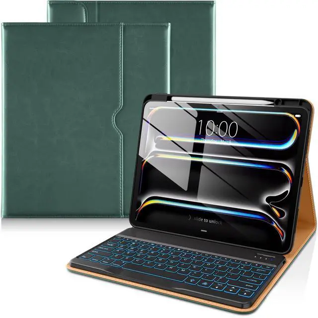 Please Note: Not compatible with any other iPad model ^^ 7 Color Backlight KeyboardThe keyboard for iPad 13 inch case is designed with laser-etched backlit keys that allow 7 vibrant colors to shine in the dark. Ergonomic and mechanical scissor keys with rebound feature to reduce noise ^^ Leather MaterialBuilt with premium PU leather, lined with microfiber provide full protection for your iPad Pro 13 inch, against impacts, drops and scratches ^^ Front Pocket & Multi-view Document Card Pocket can store your business cards, bank cards, notes or bills while on the go. This for iPad Pro 13 inch case with keyboard is designed with multiple horizontal bracket angles for comfortable watching videos, studying, working or reading ^^ Built-in Pencil HolderEquipped with pencil holder and pen slot, the cutout in the back makes it easy to take the pencil out for use, no need to worry about the pencil getting lost or inconvenient to carry (Pencil is Not included)