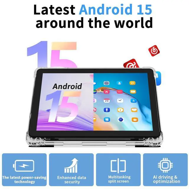 Newest Android 15 TabletWith the latest Android 15 OS and 2.0GH z quad-core processor, this 10 inch tablet smoothly handles daily apps and games, removes bloated ads, enhances user privacy, and more features for you to explore.