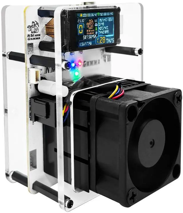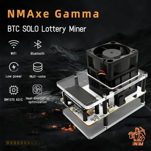 Solo Lottery Mode: Unlock the potential of solo Bitcoin mining with the Gamma Miner! Powered by the advanced BM1370 ASIC chip, it delivers 1.2TH /s hash rate 2.4 x faster than previous models. Unlike pool mining, this lottery miner gives you a direct shot at the 3.125 BTC block rewardno sharing, just pure profit potential. Perfect for miners who love high-risk, high-reward opportunities! ^^ WiFi & Bluetooth Crypto Miner No PC Needed: The Gamma Miner is a standalone Bitcoin mining machinejust plug in, connect via WiFi or Bluetooth, and start mining! No external computer or complicated setup required. Its low-power 20W design makes it energy-efficient, while the open-source ESP-Miner software ensures easy customization. Whether you're a hobbyist or a serious miner, this ASIC miner offers hassle-free operation. ^^ BM1370 ASIC Miner 16J/TH Efficiency (Like Antminer S21! ): At the heart of the Gamma Miner is the Bitmain BM1370 ASICthe same ultra-efficient chip used in the Antminer S21! With 16J/TH efficiency, this crypto miner maximizes performance while keeping power costs low. Compared to older models, it delivers higher hash rates ( 1.2TH /s) at the same 20W power consumptionmaking it one of the most cost-effective Bitcoin mining machines available. ^^ Low-Cost, Low-Maintenance
