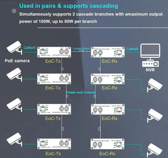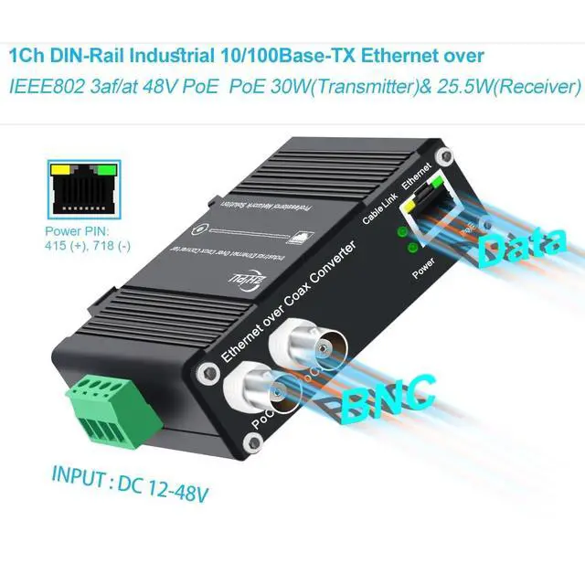 & PoC): Supports Power over Ethernet (IEEE 802.3 af/at) and Power over Coax (PoC) simultaneously, ideal for IP cameras, surveillance systems, and industrial networks. ^^