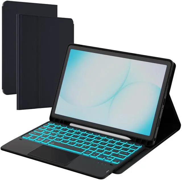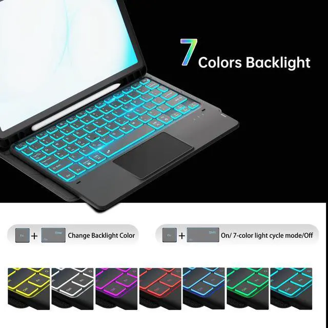 Color Backlit Keyboard: This Samsung Tab A11+/A9 Plus tablet case with keyboard designed with 7 colors backlight with 3 level brightness to adjust, make it fun and easy to type in dark or at night. The removable keyboard and the leather case are magnetic. If not needed, you can remove it. Safe closed closure allows you to carry a tablet keyboard and hard shell with you. Convenient to carry, very suitable for travel and business ^^