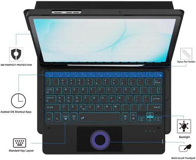 Multi-Touch Trackpad: US QWERTY Layout keyboard for Galaxy Tab A11 Plus with intelligent touchpad without needing a extra mouse, supporting multi -finger function and you can accurately control and navigate, realize the combination of tablet computers and computer functions, enjoy "Laptop"experience. Easy to control your tablet, edit documents, browse the network and build a presentation for unparalleled speed, improving work efficiency ^^