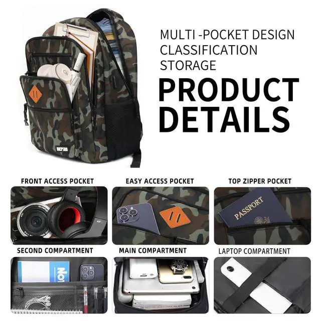 ^^ Quality Material: Laptop school backpack for men/women is crafted from premium water-resistant polyester, complemented by sturdy metal zippers, ensuring longevity and protection against the elements. This functional masterpiece is not just about aesthetics; it's backed by a 1-year warranty, reflecting our dedication to quality and your satisfaction.