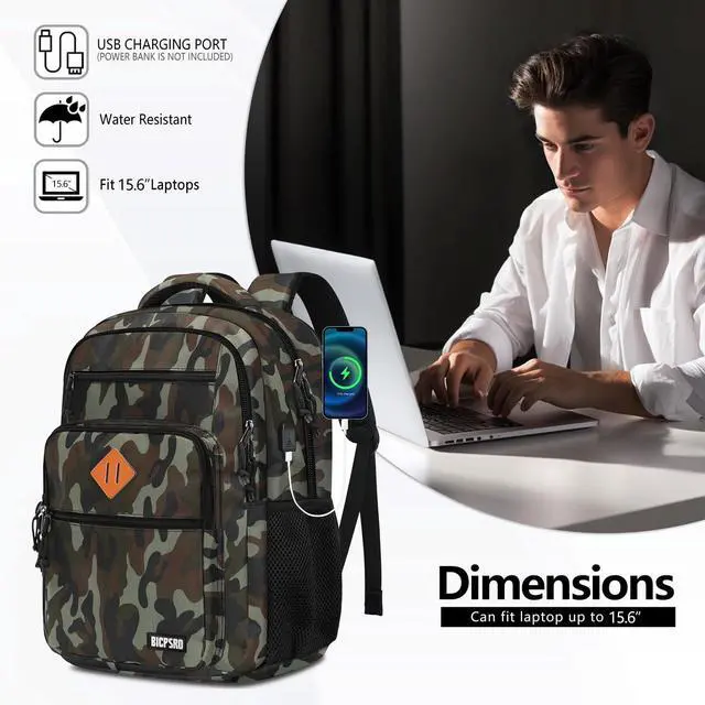 Classic Design: One big pockets with laptop compartment with thick foam can hold 15.6 Inch Laptops, could well protect your laptop when falling down. Main pocket is spacious, you can put clothes, books, stationery etc. in it. Also with organizer pockets, make your items easy to find. An ideal school backpack, laptop backpackwork backpack.