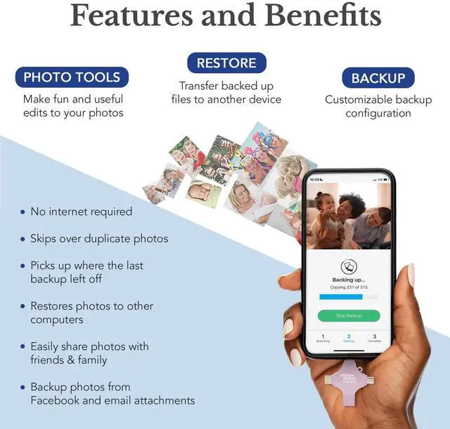 Multi-Device Compatible: Picture Keeper is compatible with iPhones and iPads with iOS 12 and newer, Android 5 and newer, Windows 7 and newer, and Mac OS 10.3 and newer