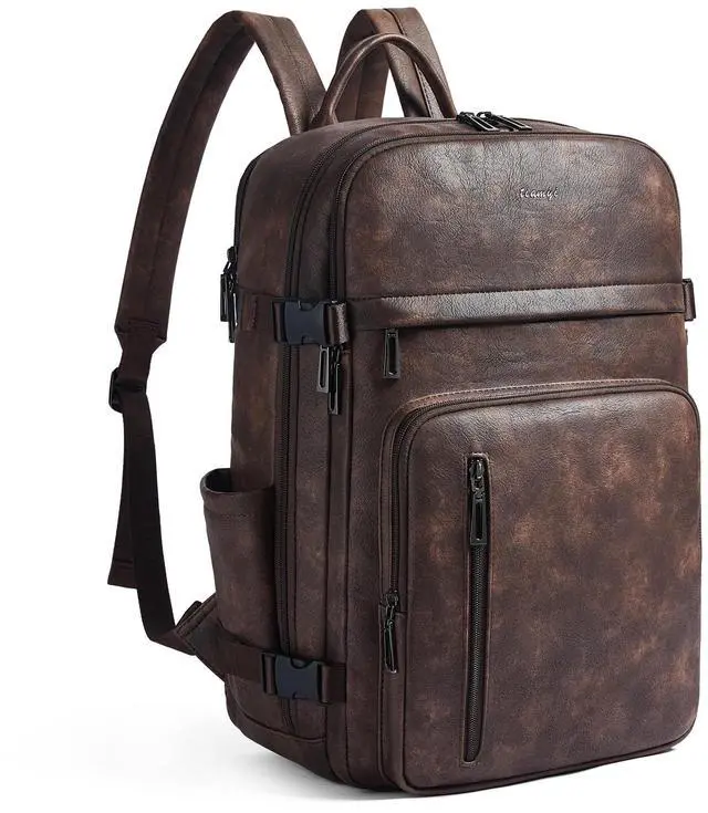 ^^ Maximum organization: crafted with soft, premium, durable vegan leather, this 35l carry-on leather backpack has a 180-degree lay-flat opening that packs like a suitcase for effortless organization. multiple interior pockets and dual exterior bottle pockets keep all your travel and work essentials neatly organized.