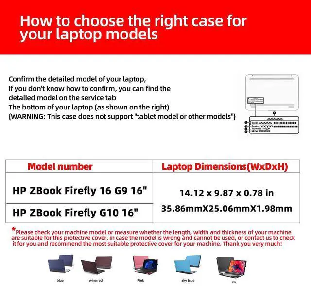 Compatible models: This cover/shell is only suitable for HP ZBook Firefly 16 G9/ZBook Firefly G10 /ZBook Firefly G11 16"Mobile Workstation, laptop