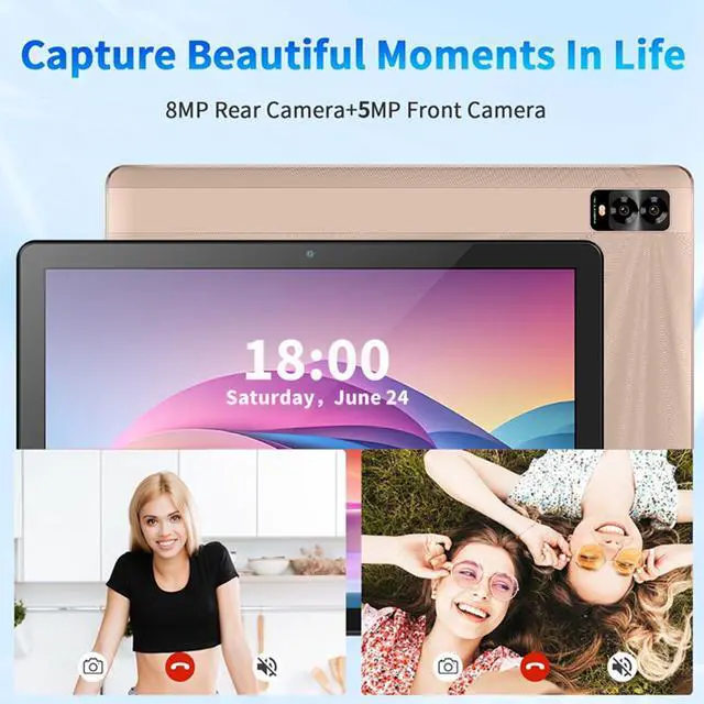 Dual Cameras and Speakers: 5 MP front camera + MP rear dual cameras to bring your photos and videos to life. The tablwt comes with two speakers for more powerful sound and immerses you in a world of sound.