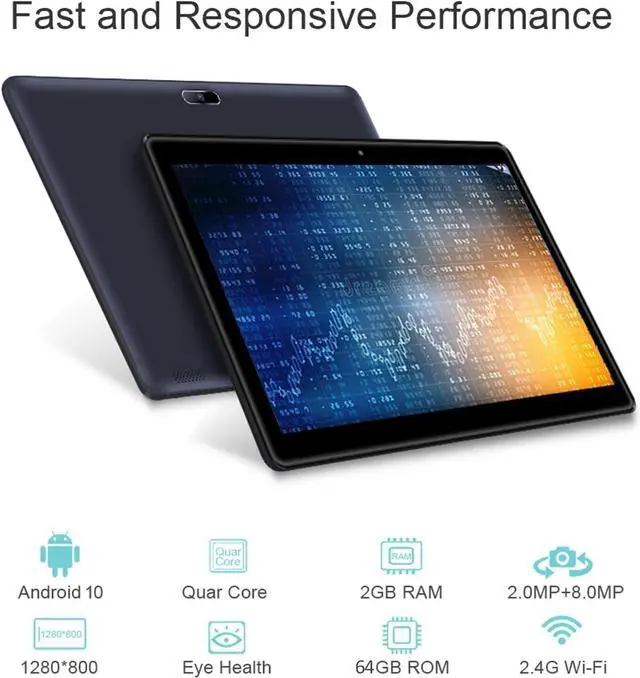 Large Screen Experience: The 10.1-inch large screen provides a larger and more comfortable viewing experience ot the tablet. And 1280*800 IPS resolution brings brighter color clarity. The combination of 2MP front camera + 8MP rear camera can perfectly realize selfie and other shooting, helping you to record the every moments in life all the time.