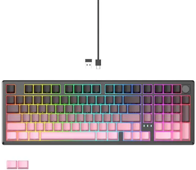Multi-device connectivity: The LUMI101 supports three connection modes: Bluetooth 5.0, 2.4GH z wireless (via the included receiver), and USB-C wired connection. By using the FN combination keys, you can easily switch between 5 paired devices (laptops, desktops, tablets, smartphones, game consoles) with ease (no need for repeated pairing, 1-second switch), enabling efficient multitasking. Whether for work, gaming or studying, the LUMI101 can make your device configuration flexible and unrestricted, with no interruptions and seamless usage in all scenarios. The LUMI101 adopts a hot-swappable PCB design, compatible with 3-pin and 5-pin mechanical keycaps - you can easily replace them without soldering. It comes with a key/column extraction tool to help you freely replace the keycaps and key columns, creating an ideal feel. Factory-pre-installed linear keycaps ensure smooth touch and quick response. The full-size keyboard with a numeric keypad offers a clean and efficient tapping sound for both gaming and professional work. It is suitable for long gaming sessions and professional office use. Achieving a perfect balance between mechanical accuracy and silent performance, it is highly suitable for shared office environments and home use. LUMI101 is a high-end TKL mechanical keyboard that combines gaming and productivity features.