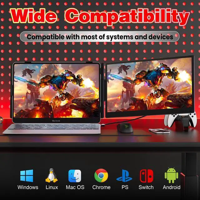 ^^ [Wide compatibility]: Our ultra-thin travel monitor for laptop supports multiple devices and operating systems. Compatible with devices such as Windows, Mac, Chrome, Android, Linux, Dex, and Switch. Please read the manual carefully before use. If you have any questions, please contact us for technical support. NoticeThere maybe some laptop doesn't have enough Type C port or HDMI port to use the product, in this case, you can contacet us and we will provide you an special cable to connect the screen extender. ^^ [226 Rotation, Eye-Care