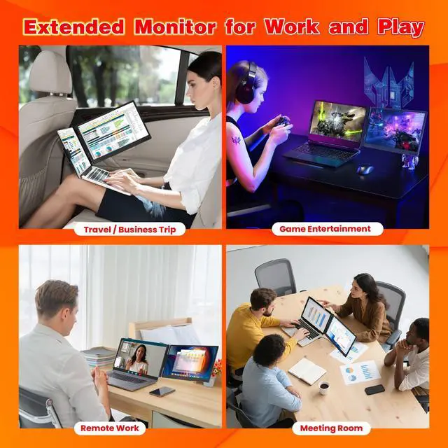 Productivity]: Portable monitor for laptop supports expansion mode, mirror mode, and second screen mode, making it perfect for conference presentations, multitasking, and allows you to simultaneously open multiple windows, work, video conferences, watch movies or play games on different screens without the need to switch back and forth continuously on a single laptop screen. It can increase your efficiency by 200%, making it ideal for programmers, people working on the go, gamers, finance and investment professionals, designers, and anyone who needs a more efficient workflow. ^^ [Plug and Play, no