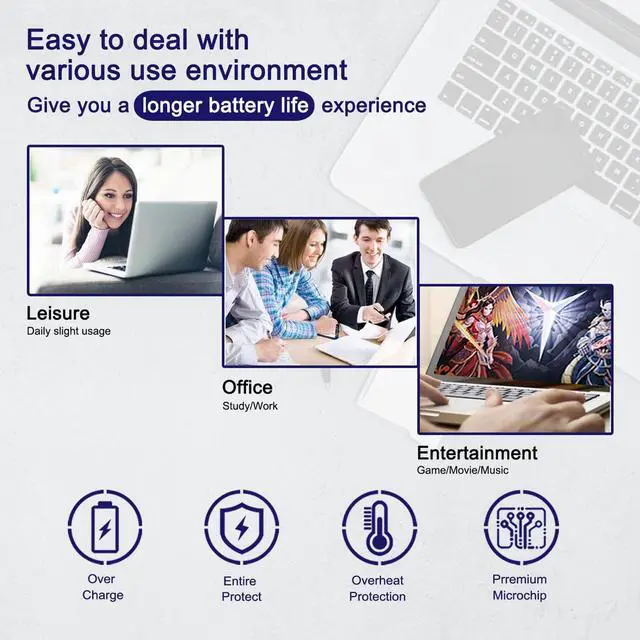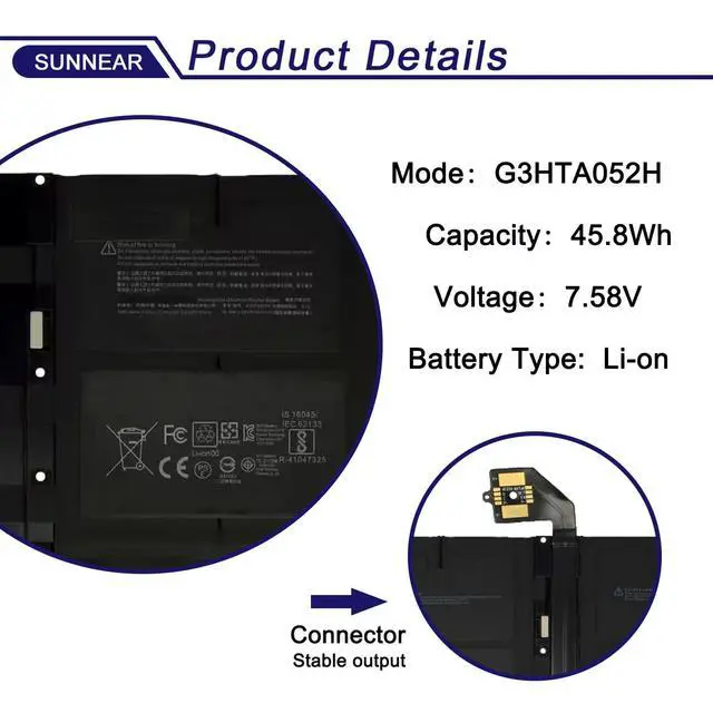 (Notice: Not fit for 15 inch laptop) ^^ Compatible Part NumberG3HTA052H DYNT02 ^^ TipsIf the new battery is not recognized during the initial installation, please reinstall and check if the interface is fully connected. Run the new battery down to 5% (not 0%), then top up its power and complete 3-4 power cycles to wake up the new battery.