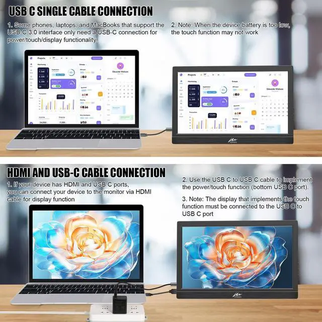 ^^ 10-Point Touch: Enjoy a convenient touch interface without the need for additional drivers! Simply connect via USB-C to enable touch functionality on your travel monitor, making it ideal for laptop users seeking greater interactivity.