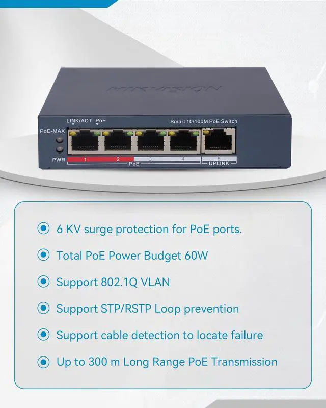Protect your connected equipment with built-in 6KV surge protection on each PoE port, shielding against voltage spikes. Combined with a quiet, fanless design, this