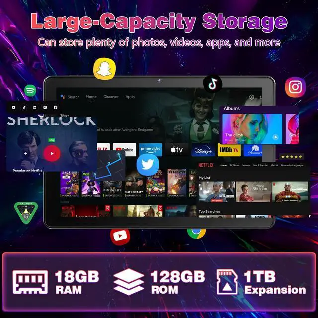 Powerful PerformanceAdvanced octa-core processor and big storage 18GB of RAM delivers smooth performance for demanding tasks, multitasking and gaming. The large 128GB of internal storage provides space for essential apps, while the remarkable expandability up to 1TB via a MicroSD card liberates you from storage constraints. This makes it perfectly suited for storing extensive 4K video libraries, high-resolution audio, professional documents and all your digital resources. ^^ Immersive DisplayThe 10-inch IPS HD display has 1280x800 resolution and excellent color reproduction, offering sharp visuals and wide viewing angles for immersive viewing and reading.