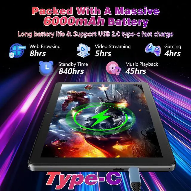 With Widevine L1 security certification, the device is authorized by major streaming services like Prime Video and Disney+ to play protected content in High Definition (HD) or higher, transforming your streaming experience into a truly cinematic and visually satisfying spectacle. ^^ All-Day BatteryPowered by a high-capacity 6000mAh lithium-polymer battery, this tablet can deliver over several hours of continuous video playback or sustain a full day of mixed usage involving web browsing, document editing, online learning, and light entertainment. This exceptional endurance significantly enhances its portability, freeing you from power outlets during long trips, outdoor activities or full-day schedules, ensuring you stay connected and productive.