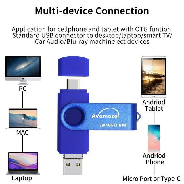 The 3in1 USB-C &Micro flash drive makes it seamless to move data between your USB-C smartphones, tablets, laptops, the iPhone 15 series, which has been available since 2023, (iPhone 15, 16, 17, iPad Pro with Type-C/USB-C port) and your USB-A devices such as computers, car audio, printers, game consoles, and more. ^^ The photo backup flash drive works with Android Smart Phone with OTG function.