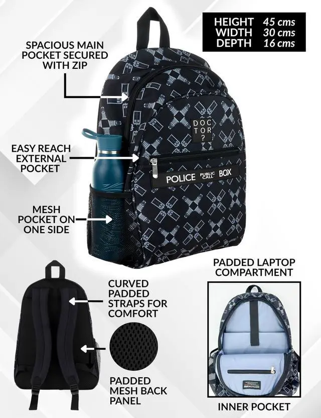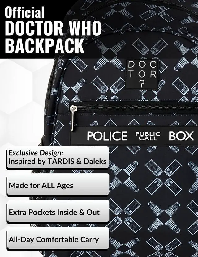 Official Doctor Who Backpack: Exclusive design, licensed by the BBC Doctor Who features TARDIS and Daleks ^^
