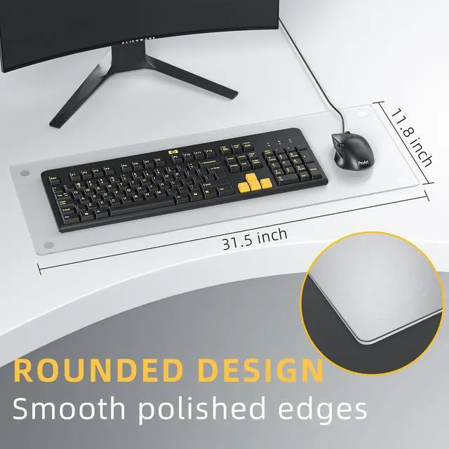 ^^ Reinforced Tempered Process: Through high-temperature strengthening and precision edge grinding, the glass panel boasts a hardness of 9H, making it scratch-resistant, wear-resistant, and resistant to yellowing and deformation. It easily withstands daily friction and minor impacts. The hard mouse pad's special surface coating is stain-resistant and easy to clean; a simple wipe with a damp cloth is all it takes.