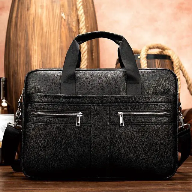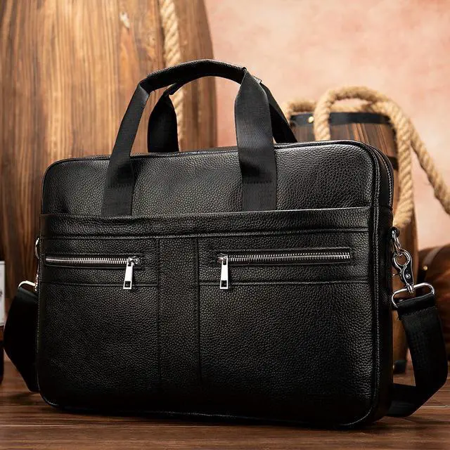 DescriptionThis handsome men's leather briefcase is the epitome of style and functionality. Crafted from premium full-grain leather, it exudes an understated elegance that commands respect in any professional setting. The spacious interior compartment can accommodate a 15.6 or 16.1 -inch laptop, along with documents, files, and other essentials. Multiple zippered pockets and organizational slots keep your belongings neatly organized. The adjustable, padded shoulder strap ensures a comfortable carrying experience, while the sturdy top handles offer an alternative grip. Whether you're heading to the office or embarking on a business trip, this briefcase is the perfect blend of sophistication and practicality.