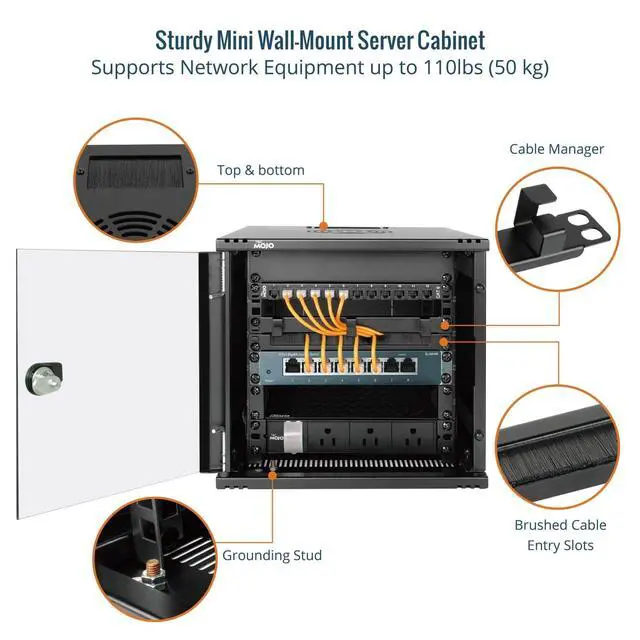 Enhanced Cooling & Security: Vented side slots improve airflow and prevent overheating; lockable front door safeguards sensitive connections ^^