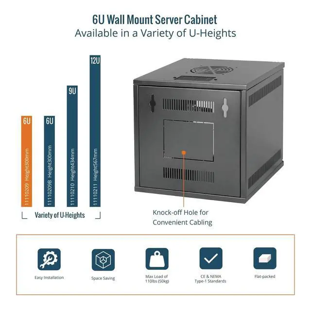 Industry Compliant: 6u 10 inch wall mount cabinet meets CE and NEMA Type-1 standards, ideal for network racks, server cabinets, telecom, AV equipment, and professional data closets