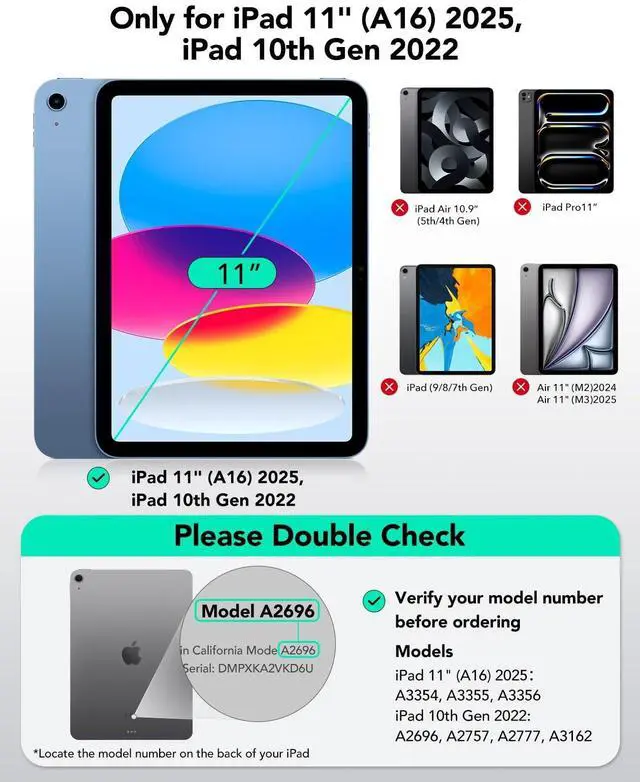 Compatibility: only compatible with iPad 11th(A16, 2025)/10th Generation; models A3354A3355A3356A2696A2757A2777A3162 ^^ Work from
