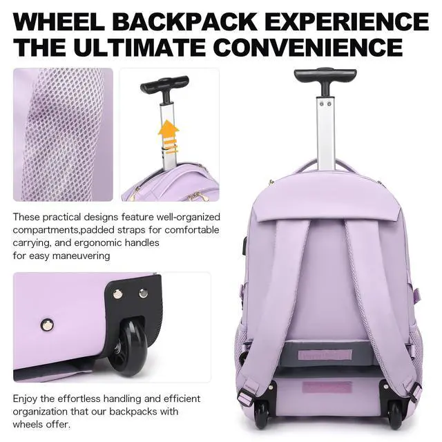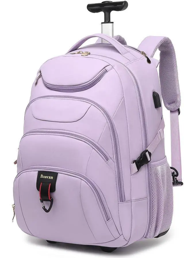Boavan Rolling Backpack for Women, 17.3 Inch Wheeled Laptop Backpack,Large Travel CarryOn Bag for Teachers College Students, USB Charging Port Waterproof Business for Airplane Overnight LuggagePurple