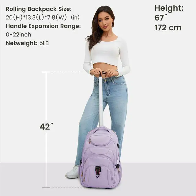 • Travel-Friendly: With dimensions of 20 x 12.5 x 7.8 inches and a lightweight build of 5lbs, this rolling backpa