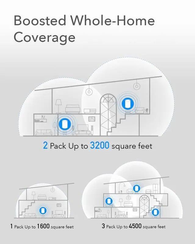 Whole Home Mesh, Dead Zone Killer. Advanced whole home Wi-Fi mesh system, delivers smooth video streaming and fast online gaming to more devices at the same time. ^^ Whole Home Wi-Fi System, Run Faster, Connect More. Experience the AC1200 Wi-Fi speeds of up to 300 Mbps on a 2.4GH z and 867 Mbps on a 5GHz. ^^ Up to 1Gbps Wired Speed. Combined with 2 Gigabit Ethernet ports per device, this product is aimed to offer whole home gigabit experience for your home or office. ^^ Seamless Roaming, Simple and Smart.