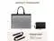 Dimensions: 16.5"L x 12" H x 6" D. This work bag for women includes an independent compartment for laptops and tablets, a spacious main pocket for documents, books, and gadgets, two small square pockets, two pen slots, and a side pocket for a power bank and water bottle. ^^ Elegant Laptop Tote Bag for